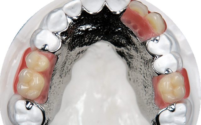 Partial Chrome Dentures are made of a metal framework with acrylic teeth and gum areas. The casting denture  includes metal clasps which help hold the Denture in place. Chrome dentures are designed with metal clasps and rests that gain support from adjacent teeth. The metal aspects increase tightness and stability of the plate. This means increased comfort for you and allows your dentures to be made conveniently smaller.